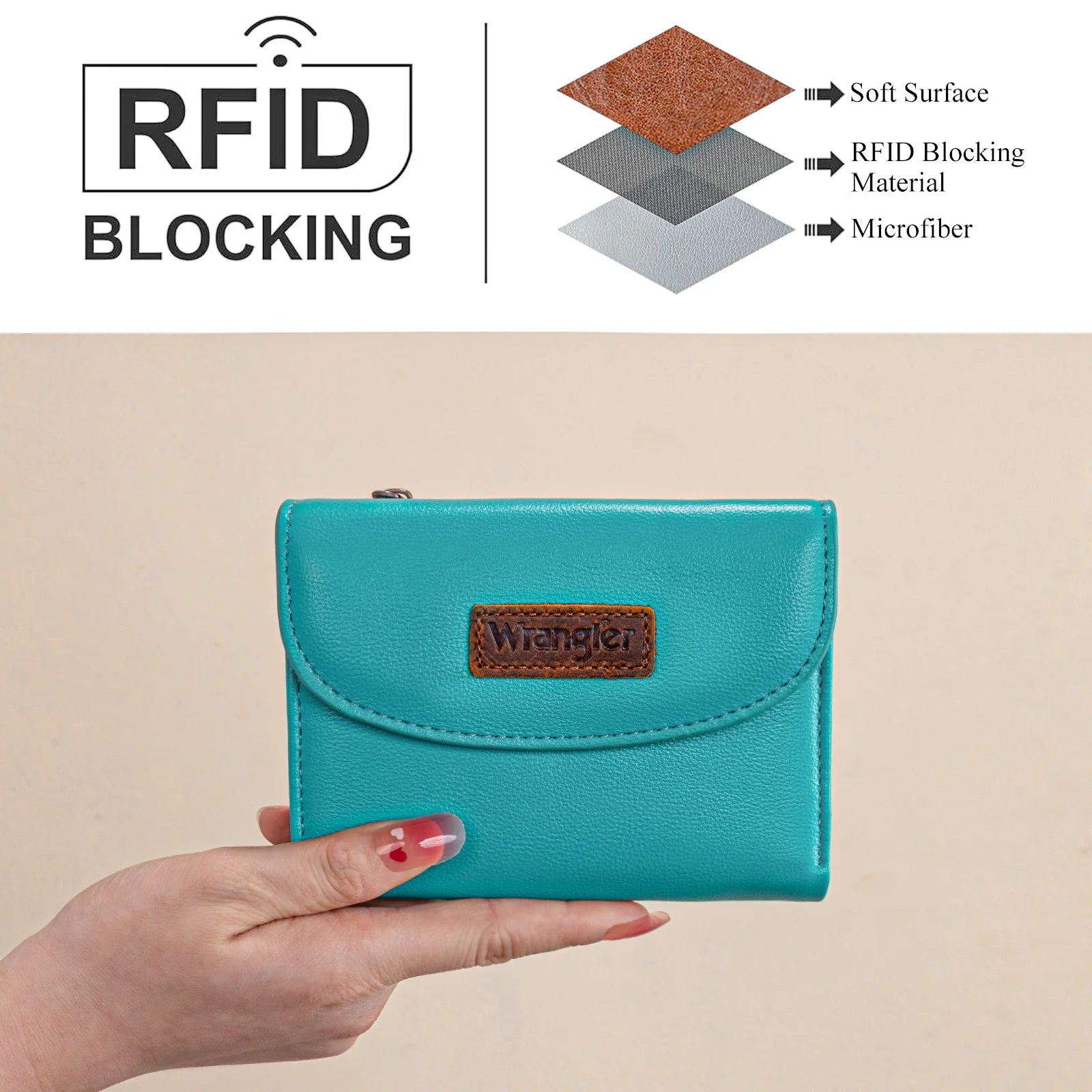 Wrangler Color Block Tote/Crossbody & Wallet Set – Turquoise and Tan