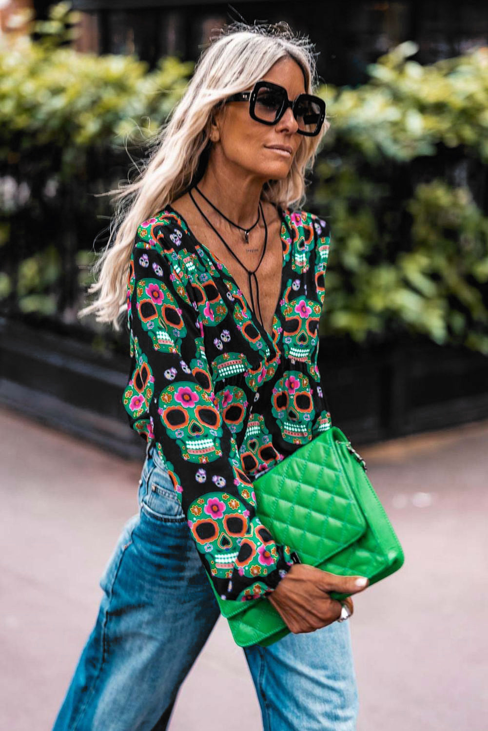Turn heads and channel your wild side with the Western Soul Sugar Skull Top. This bold beauty blends southwestern flair with playful boho vibes, thanks to its vibrant sugar skull print and flowy babydoll fit. With its deep V-neck and soft, breathable fabric, it's the kind of top that’s made for dancing under desert skies or turning an everyday outfit into a full-on statement.