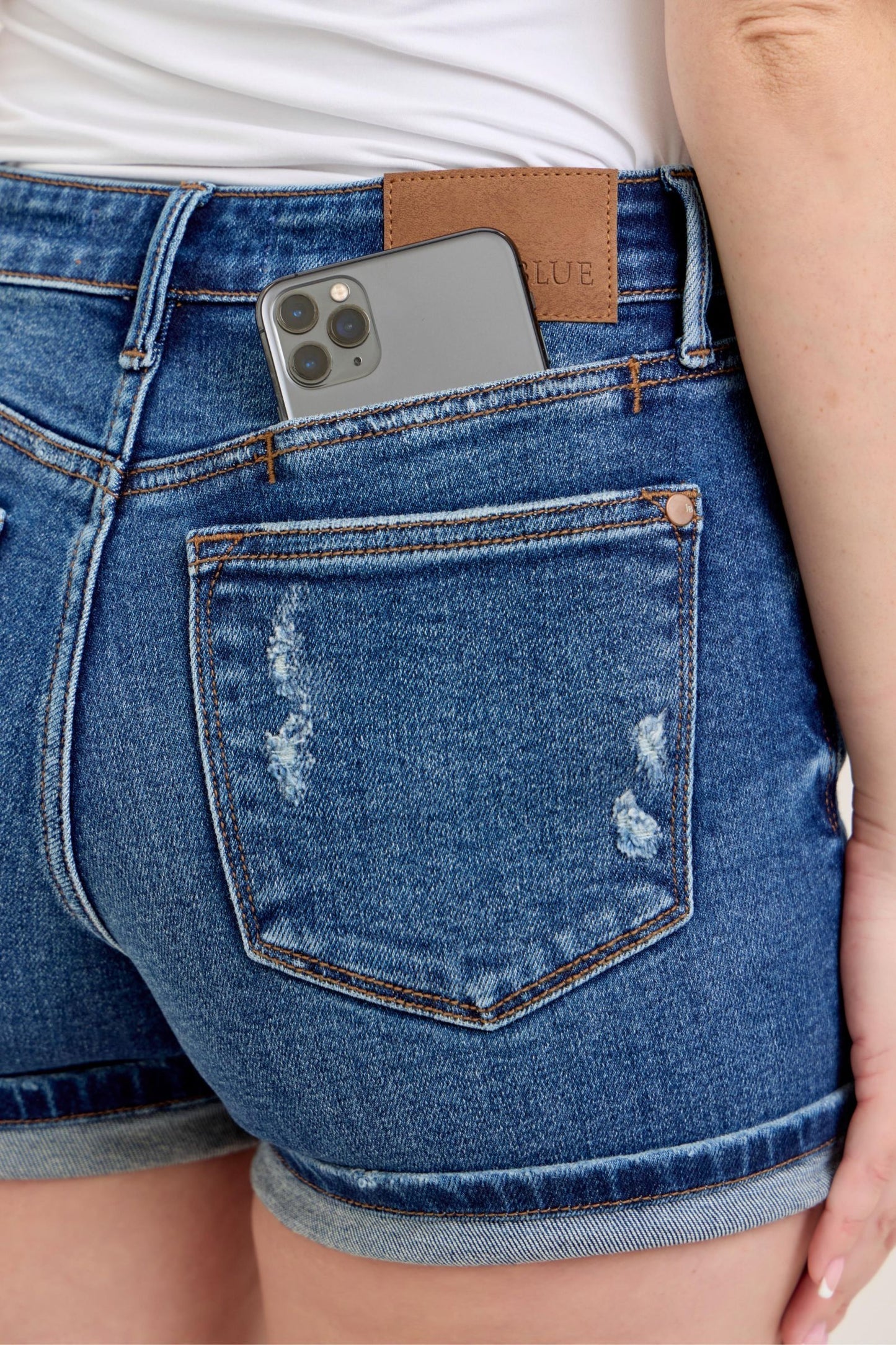 Judy Blue Mid Rise Cell Phone Pocket Shorts 15285